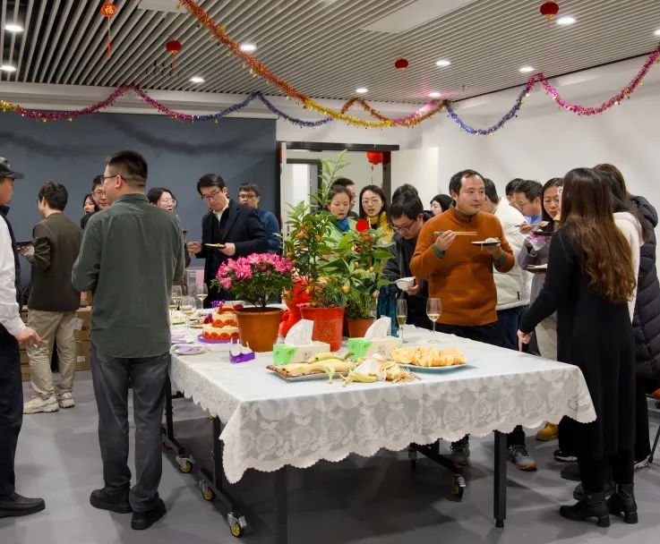 准备了南京烤鸭、羊肉串、羊肉汤、双层大蛋糕、饺子,还有水果、茶饮等各种美食和饮品。老师们品尝美食,举杯同庆过去一年的成绩,展望畅谈未来的发展。