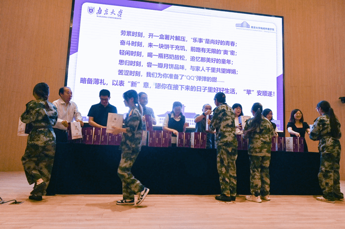 接下来是军训慰问环节,伴随着活泼的音乐声,同学们依次上台领取澳洲幸运10开奖