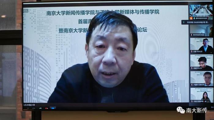 副院长胡翼青教授发表致辞。他对各位老师不辞辛苦坚持参会的行动表示了感谢,对连续举办了八届的青椒论坛的深厚传统表示了肯定,并认为此次论坛对南大和天大都具有里程碑式的意义。通过对自己亲身经历的分享,胡翼青教授强调了青年学者间交流与对话的重要性。他希望这次论坛体现出两点风采,第一是任何学者之间都能平等对话,第二是评议人点评不留情面,以帮助青年教师更快成长,希望各位青椒能在丰富的日程安排和激烈的对谈交锋中享受学术的快乐。