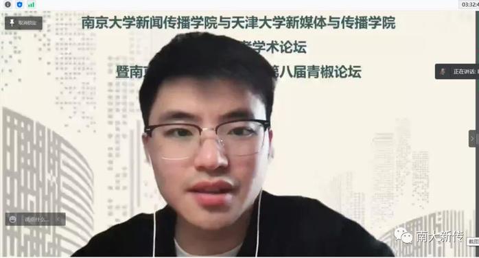 接下来南京大学周奕欣带来题为《Will Time Matter in Online News Curation? An Eye-Tracking Experiment Abstract》的分享。通过追踪被试者眼球的运动,探讨网络新闻策展的时间特征如何影响受众的注意力和感知。南京大学王成军副教授从概念使用、文献梳理等方面进行了评议。