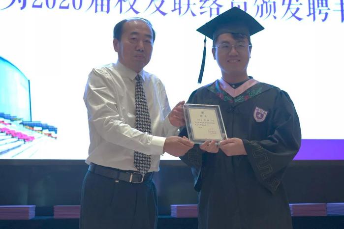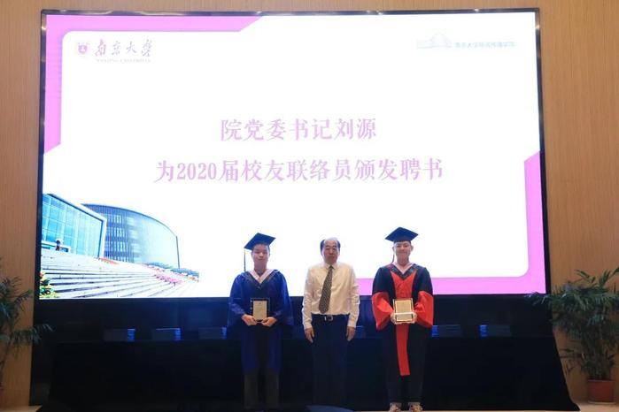 从2020届毕业生中选聘了一位本科校友联络员。院党委书记刘源为2020届校友联络员彭越颁发聘书。