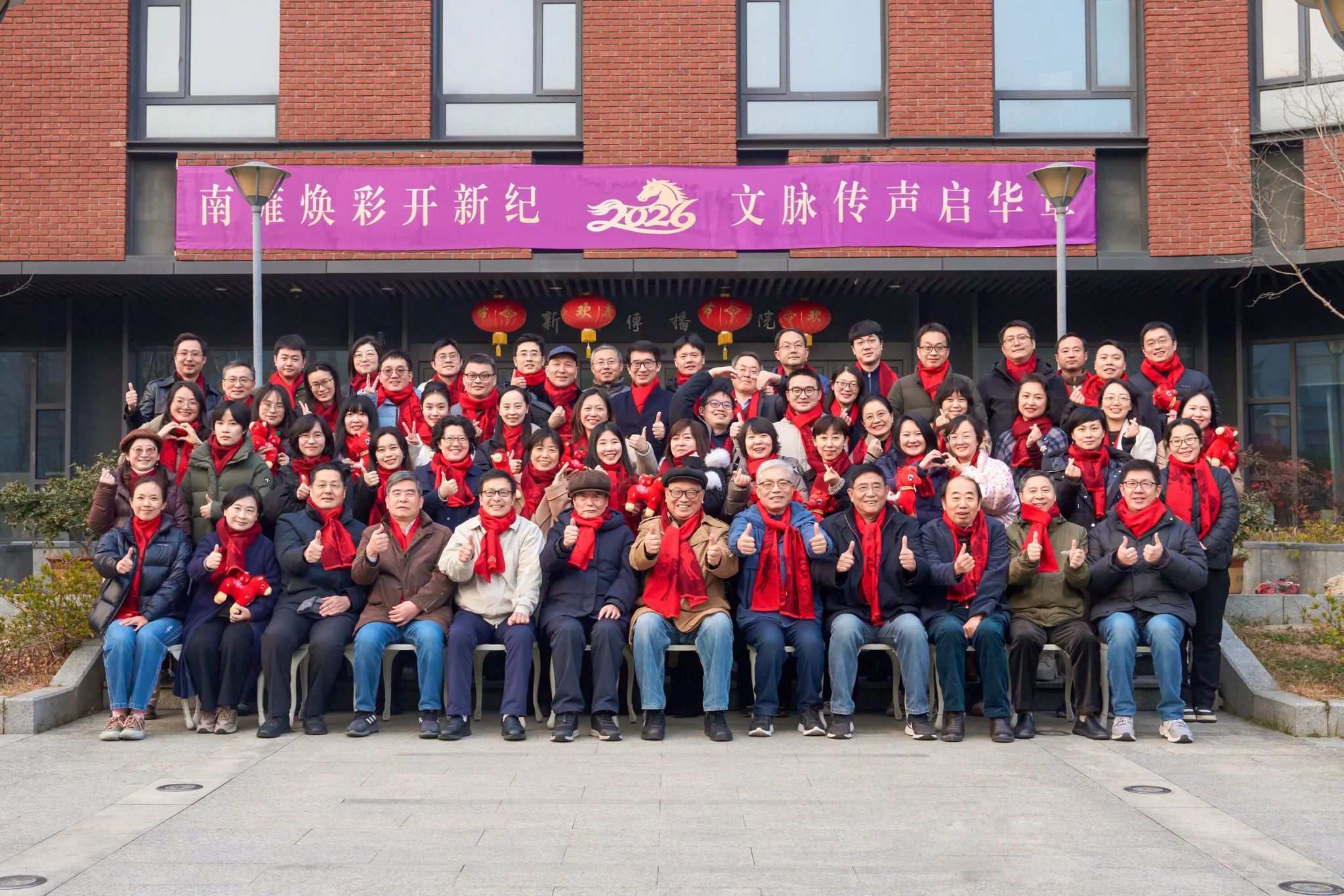 门口,老师们围好围巾,并肩站定,面对镜头露出开怀自然的笑容。红色连成一片,笑容也融成一片,相机“咔嚓”一声,定格了一抹明快又安宁的风景。