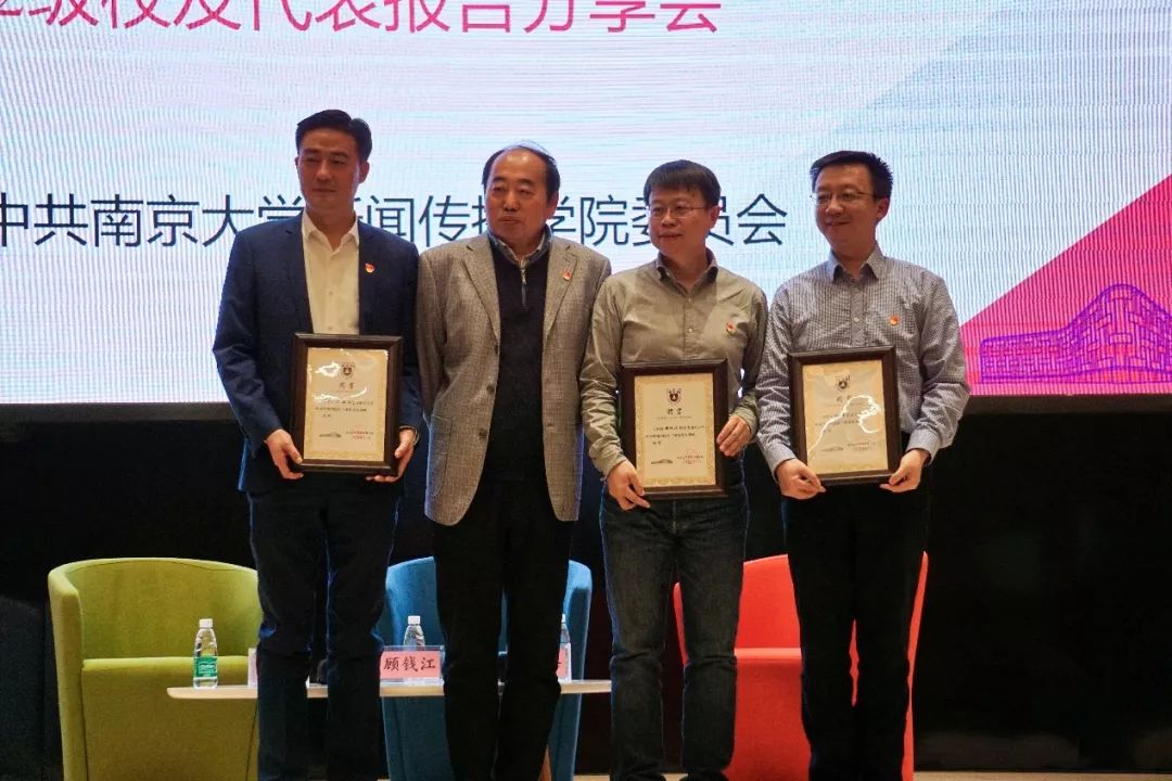 在温馨有趣的开场视频结束后,报告会正式开始。院党委书记刘源、执行院长张红军,以及全院党员、入党积极分子和学生代表来到现场,与校友交流互动。院党委副书记闻羽作为主持人,依次介绍与会嘉宾。三位主讲嘉宾分别是新华社福建分社副社长、总编辑顾钱江,羊城晚报报业集团党委委员、管委会副主任、羊城晚报副总编辑孙璇,《新华日报》社副总编辑、党委委员,中国江苏网董事长、总编辑陆峰。