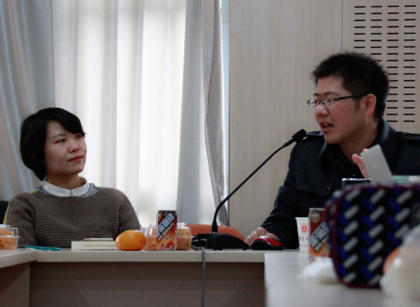 硕士生导师朱丽丽老师主持本次讲座,并向陈世华副教授赠送了南大新传“博士之家学术午餐会”文集。