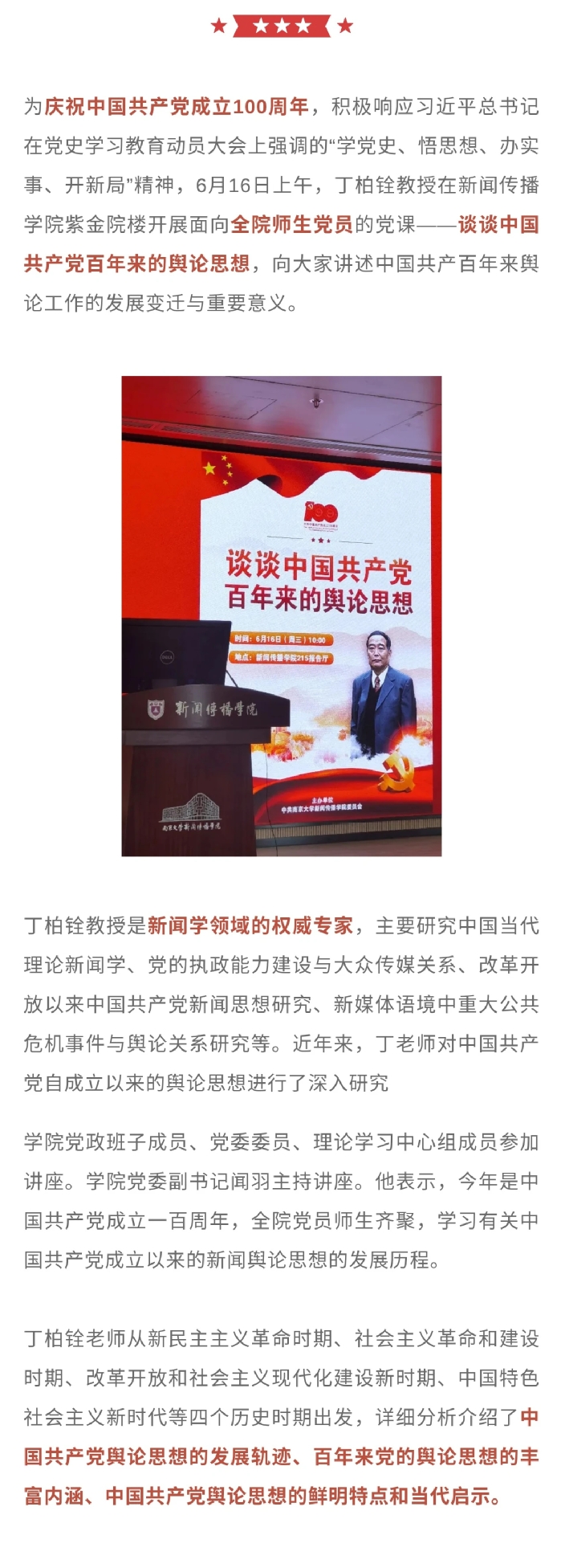 新传院组织全院党员师生听党课:谈谈中国共产党百年来的舆论思想