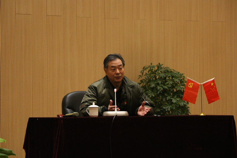致辞环节结束后,濮存昕先生在一片热烈的掌声中登上讲台,从他的个人成长故事讲起,开启了这堂特别的党课。濮存昕出生于一个“革命之家”,他的父亲、母亲都曾是党的地下工作者,两人因此结缘并组建家庭。他坦言在成长过程中,“跟党走”“求真务实”的党性教育始终深深地植根于其家庭教育之中。如今,濮先生已经是一名有着四十多年党龄的老党员了。回首往事,家中老一辈人的革命经历令他懂得,“不管千难万险、经历多大挫折,信念将一辈子炽热。”