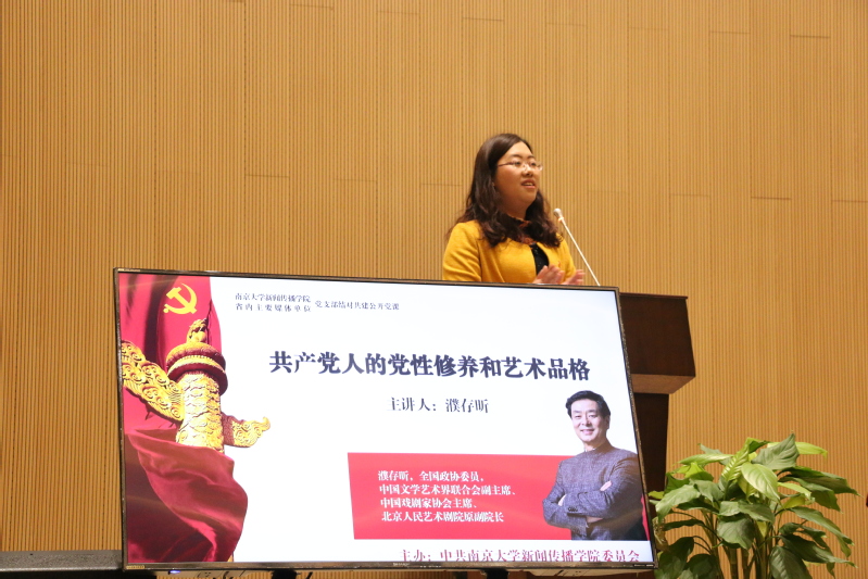 党委近年来围绕党建和思想政治教育开展的探索给予了高度肯定。杨忠介绍了主讲嘉宾濮存昕在表演艺术和公益事业方面的成就,并着重回顾了他与南京大学的渊源,盛赞其对南京大学艺术硕士剧团发展的贡献。杨忠希望全体党员以此次党课为契机,牢记习近平总书记关于做好新形势下宣传思想工作的指示精神,乘支部共建之“东风”,引导支部党员学懂弄通新时代中国特色社会主义思想,自觉强化党性修养、提升文化品位,用心锻造讲好中国故事、传播中国声音的业务能力,积极创作和传播健康向上的高质量文化产品,不断巩固壮大主流思想舆论。