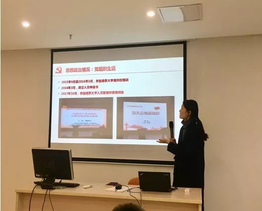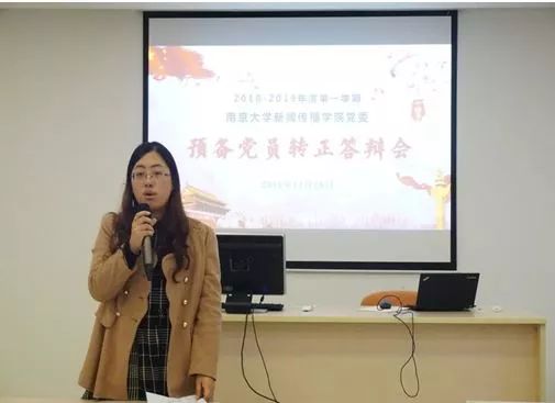 首先,预备党员进行自我陈述,向党组织汇报自己预备期一年来学习、生活情况。博士生党支部张婧妍同志重新回顾自己的入党初心,指出身边人的言传身教、耳濡目染和现实社会生活中中国共产党对于国家发展的巨大贡献对自己的思想产生了很大影响,明确自身的初心使命。
