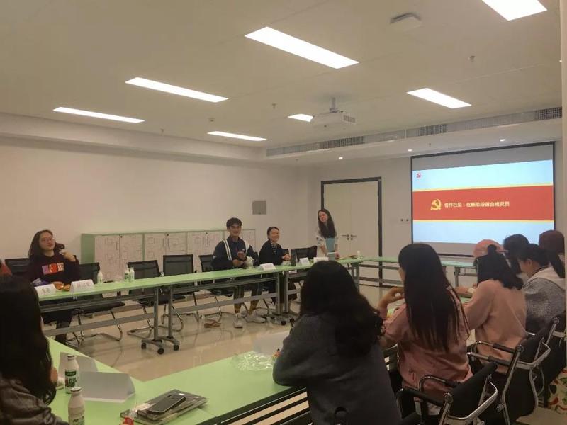 会议由党支部书记陈悦祯同志主持。首先,陈悦祯同志介绍了党支部情况,并传达组织活动的纪律。18学硕党支部共有成员18名,包括9名正式党员、7名预备党员和2名入党积极分子。每位同志身前都摆放标着姓名的名牌,方便大家互相熟悉。