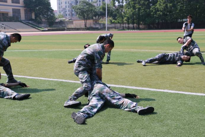 在四连指导员靖周的带领下,16专硕党支部的同志们观看了队列示范、障碍训练、捕俘格斗等课目展示,并重温了入党誓词。