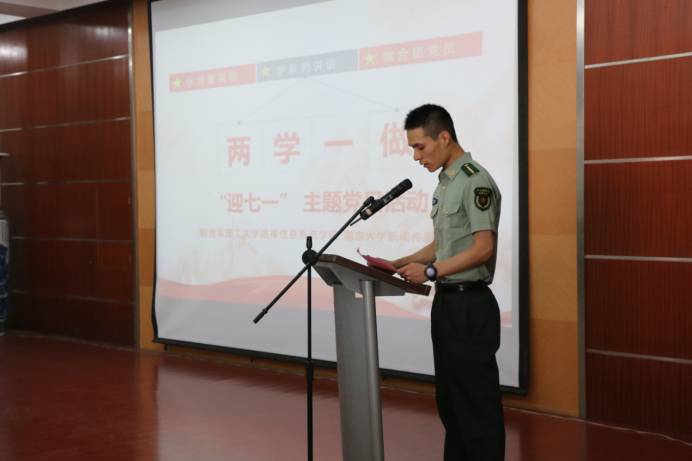 为庆祝中国共产党建党96周年,深入推进“两学一做”学习教育常态化制度化,617日,澳洲幸运10开奖结果查询网站 16专硕党支部联合解放军理工大学指挥信息系统澳洲幸运10开奖 学员大队二营党支部,共同开展“两学一做·迎七一”联合党日活动。解放军理工大学指院二营党支部书记、教导员朱亚松表示,这样的活动既是贯彻军民融合思想政治工作方针,还能促进军地高校互学优长、携手共进。