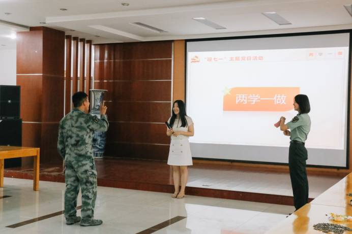 四个自信是什么?”、“十九大什么时候召开?”等“两学一做”应知应会知识竞答题;“将士们听党指挥,能打胜仗作风优良,不惧强敌敢较量,为祖国决胜疆场”同志们一起学唱军歌……双方支部成员通过内容丰富、形式多样的活动内容,相互学习、交流讨论。