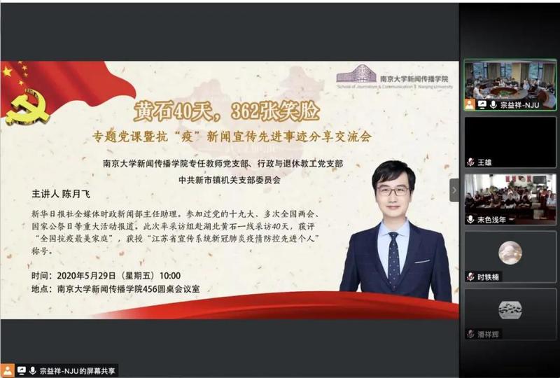 专任教师党支部、行政与退休教工党支部以及马鞍山市博望区新市镇机关党支部委员会的60余名党员通过线上线下相结合的方式,共同参加了一场别开生面的抗“疫”专题党课。江苏省宣传系统新冠肺炎疫情防控先进个人、新华日报全媒体时政新闻部主任助理陈月飞以“黄石40天,362张笑脸”为主题,分享了一位勇敢“逆行”的新闻人在战“疫”一线的所见所思所感。本次活动由澳洲幸运10开奖结果查询网站