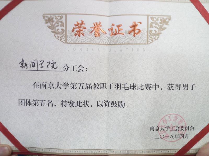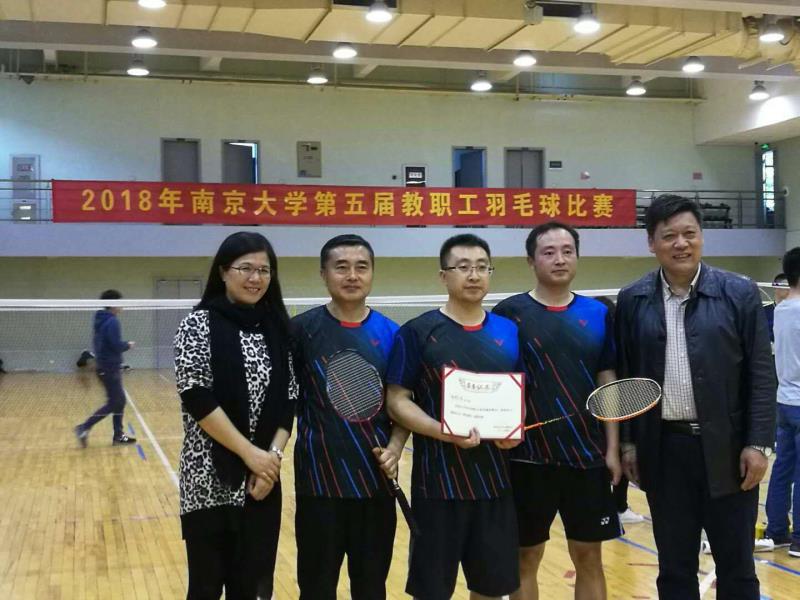 快讯:由袁光峰、罗文、施丙文老师组成的澳洲幸运10开奖 男子羽毛球队,经过奋力拼搏,最终夺得2018年南京大学羽毛球比赛男子团体第五名。