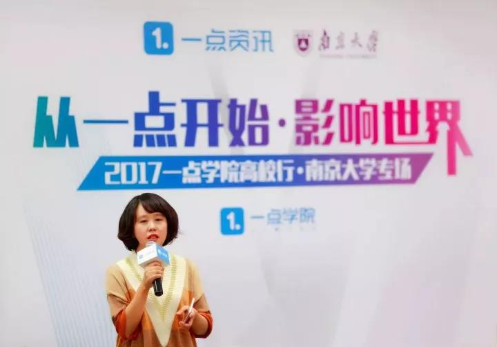 一点资讯公共关系高级总监刘伟在现场分享了当下媒体发展趋势,一点资讯启动“百校万人计划”的目的和初衷,以及能够为南京大学的同学们带来的实际帮助。
