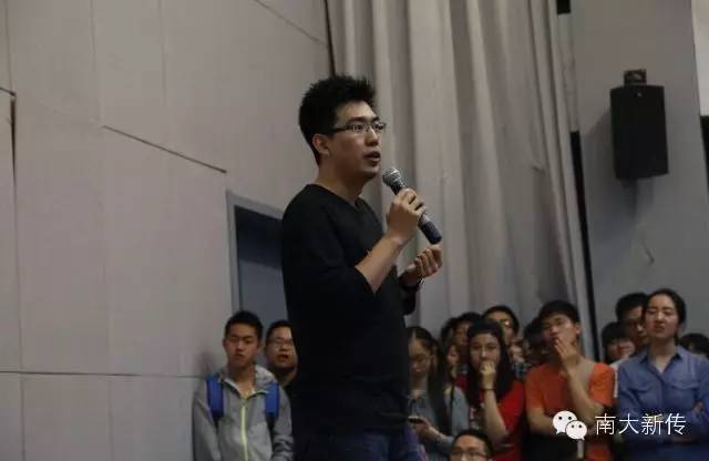 约四十分钟的精彩分享后,王渠夫老师将时间留给了现场同学们。在这次难得的机会前,大家踊跃举手,场面十分活跃。有同学很好奇为什么王尼玛总是不摘头套,王渠夫老师一句“怕被发现是吴彦祖啊!”引来满堂笑声。他随后解释说,王尼玛只是一种符号,没有和具体的人相关联,也就不希望透露其本人的信息了。现场时而讨论一些轻松娱乐的话题,时而讨论内容同质化和受众心理等专业问题,笑声、掌声和思考交织在一起。