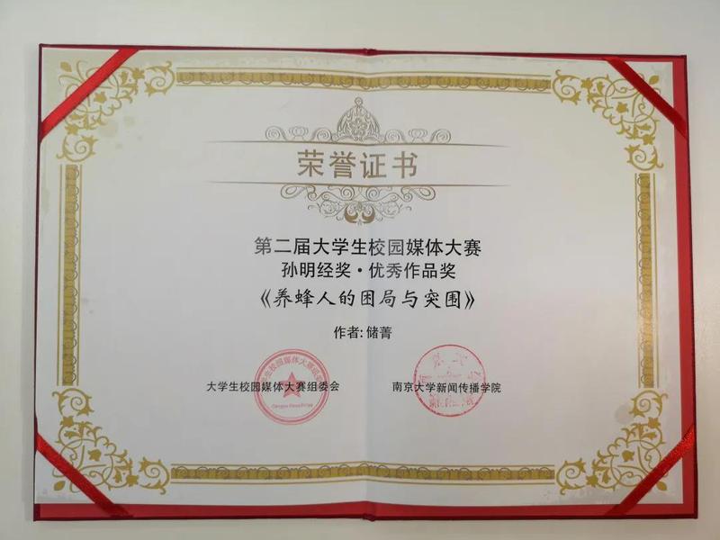 16级西班牙语系本科生储菁报道《养蜂人的困局与突围》荣获深度报道类奖项。