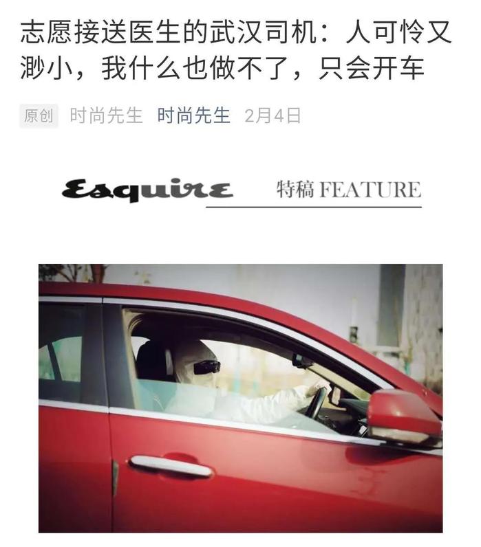 在首篇文章推送前,张瑾已经做了大量的采访,因为需要考虑到筛选独特的信源,例如以“孕妇就医资源受挤兑”为主题的稿件,别的平台已经发过,做重复的角度意义并不大。困难重重下,张瑾终于遇到了情况比较合适的信源——武汉志愿者司机黄晓民。她和黄晓民通过电话聊了两个小时左右,最终撰写出《时尚先生》的第一篇防疫特稿。