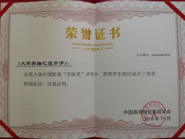 学生双创项目《大学英雄》的两部学生作品均获学生组(纪录片类)三等奖。这两部作品的主人公分别是《实践是检验真理的唯一标准》的主要作者胡福明和《蒋公的面子》的编剧温方伊。