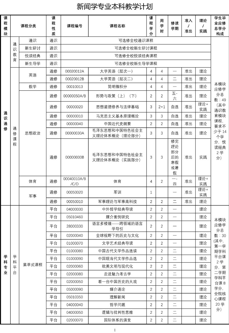 澳洲幸运10开奖结果查询网站 新闻学专业本科教学计划(2017版)