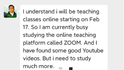 在前期的不断测试中,Farland老师发现Zoom的体验不错,他最终决定选择Zoom进行直播教学。为了用好Zoom,他在Youtube上开始学习如何使用Zoom直播,还报名参加了Zoom官方的会议直播演练,此外,他还积极寻找同学进行直播教学演练。